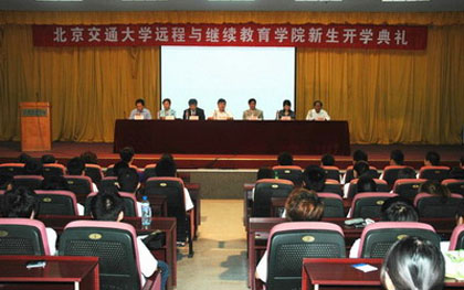 开学典礼由远程与继续教育学院副院长祝祖强主持,学院党委书记李光磊、副书记关惠峰、北京交通大学国际合作处副处长邓新华、北京交大留学服务中心主任于和平、留学服务中心副主任安玉祥、留学服务中心英国高等教育文凭项目负责人贾洪雷、项目办公室杨大轴、韩三军老师出席了开学典礼。
