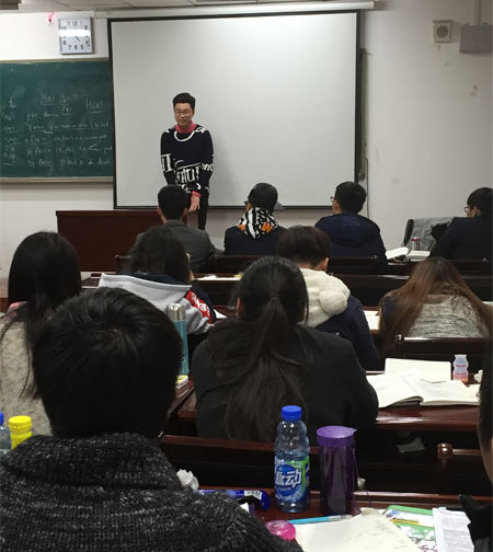 我们老师也很欣慰2013级的学生们目前在国外就读情况良好,也借此机会邀请李元昊同学给今年的新生讲述当年在华师IFC预科班的学习经历并分享了他在澳洲八大知名学校就读的感想。同学们在听完演讲后,踊跃发言提问。李元昊同学用他幽默有趣的例子解答了各位同学的问题。