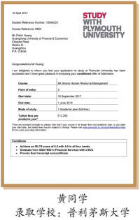![]() 2014级学生张同学现就读于英国西英格兰大学 | ![]() 2014级学生梁同学现就读于英国哈德斯菲尔德大学 |