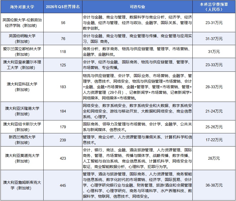 ✅ 国外阶段(2-3年):学生进入海外大学学习,完成本科专业课程,成绩合格后授予该校学士学位。